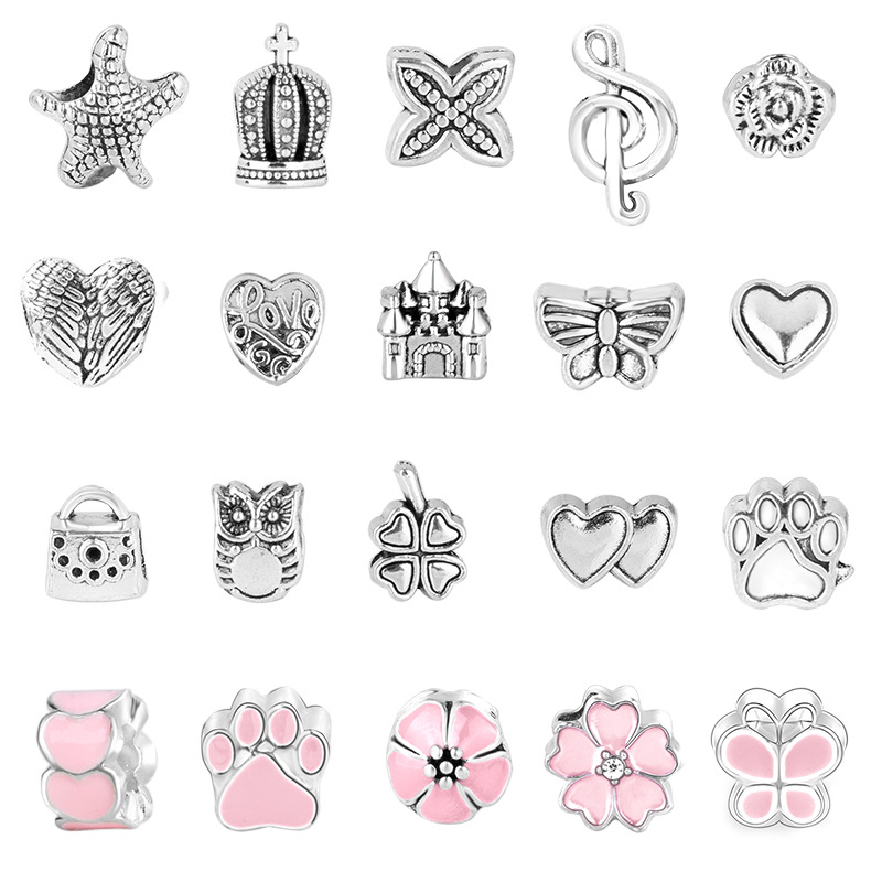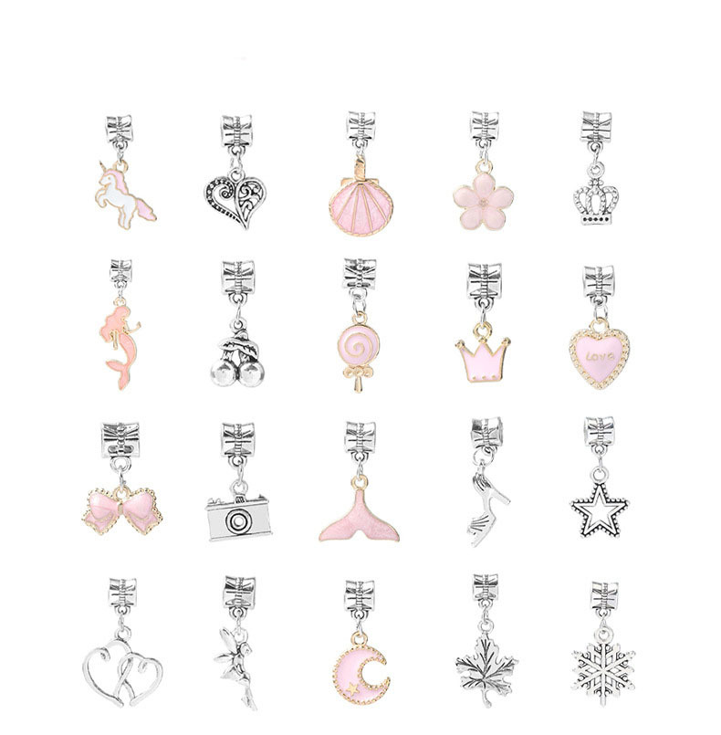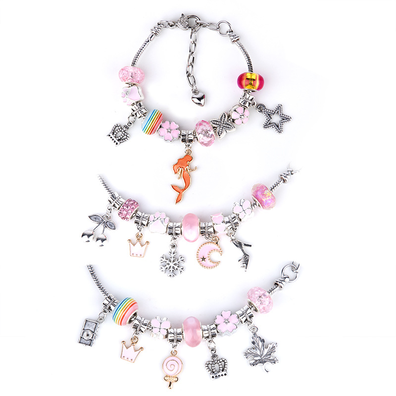 Ce kit comprend 67 pièces : 20 pendentifs, 20 perles en métal, 20 perles colorées, trois bracelets, trois cordons de collier, un sac à fermeture Éclair, une boite-cadeau, tous conçus en alliage de haute qualité.