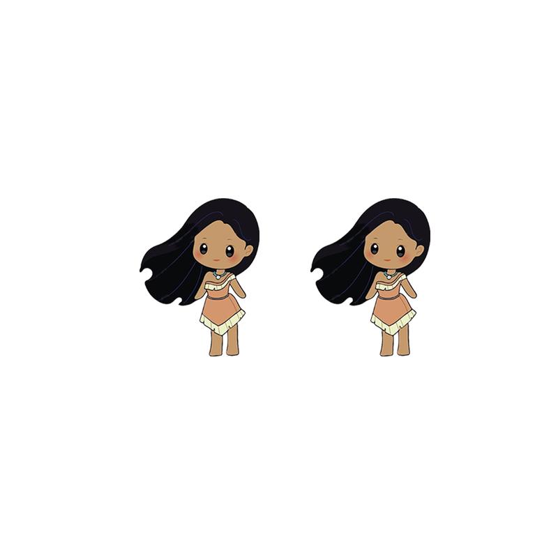 Boucles d'oreilles représentant Pocahontas, sur fond blanc