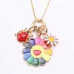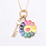 Collier à pendentif tournesol pour fille avec un petit clé, fleur et abeille