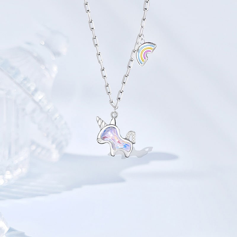 Collier avec pendentif licorne couleur argent Sterling 925 à la mode