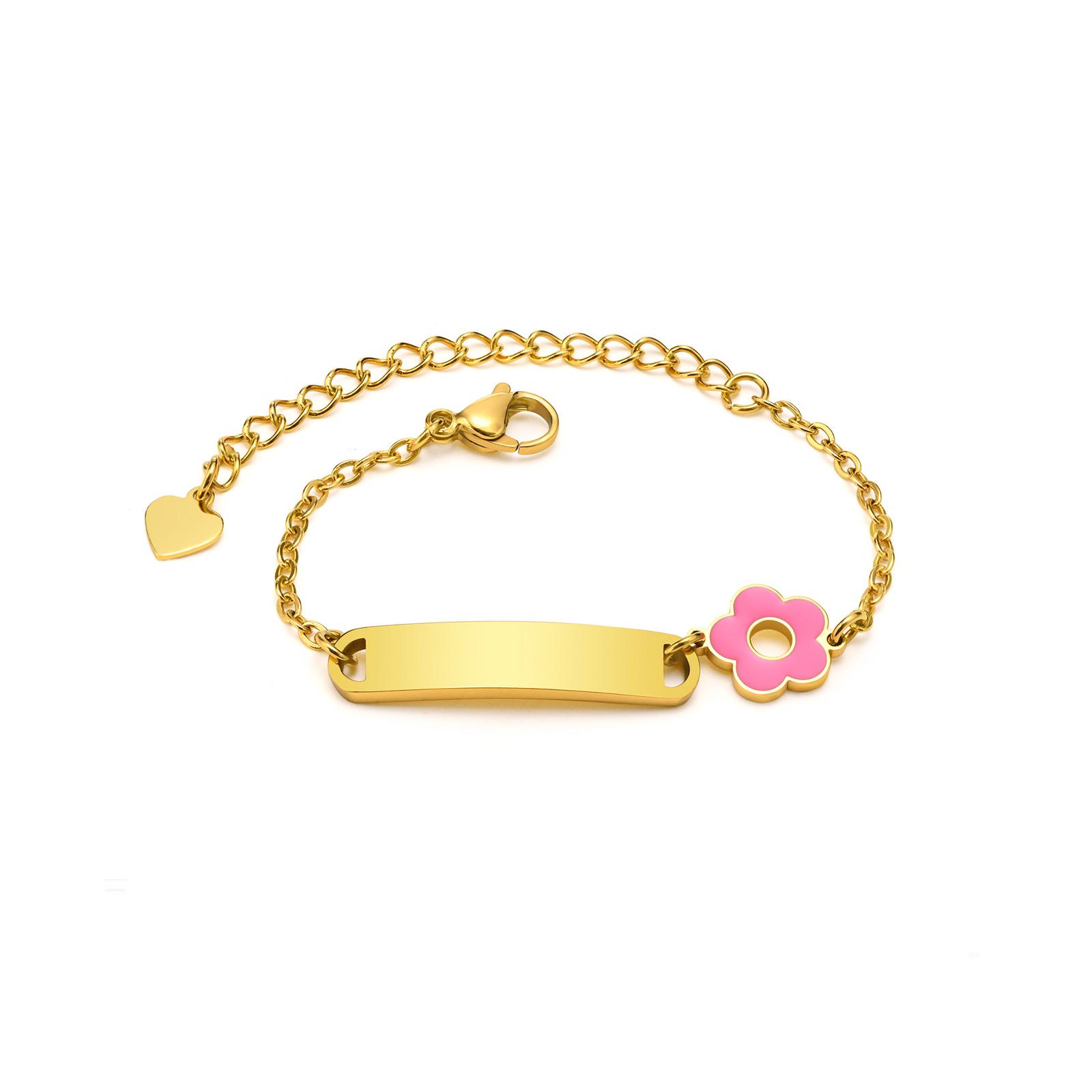Gourmette personnalisable en acier inoxydable avec détails colorés pour fille
