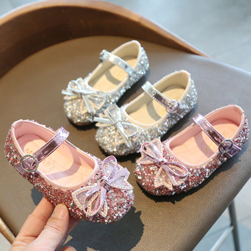 Ballerines à nœud papillon scintillant de princesses pour filles