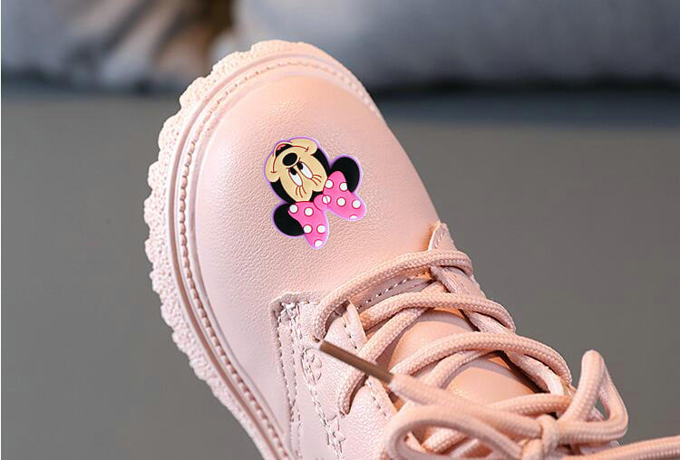 Bottes d'hiver en cuir à motif Minnie décontractées pour petites filles roses à la mode