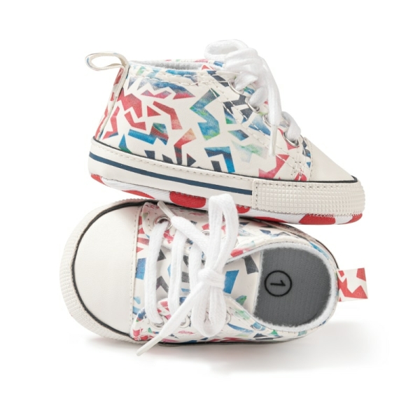 Converse pour fillette de couleur blanche avec des formes géométriques multicolores