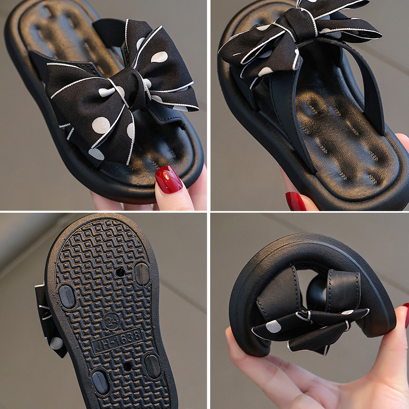 L’adorable nœud à pois qui orne le dessus des claquettes est un détail ajouté qui apporte une touche de style unique et joueuse, attirant tous les regards sur les pieds mignons des petites fashionistas. Le motif à pois apporte également une note rétro chic qui rendra ces chaussures encore plus irrésistibles.