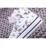 Pair de chaussures style converse à motif licorne et arc en ciel dessinés comme en graffiti