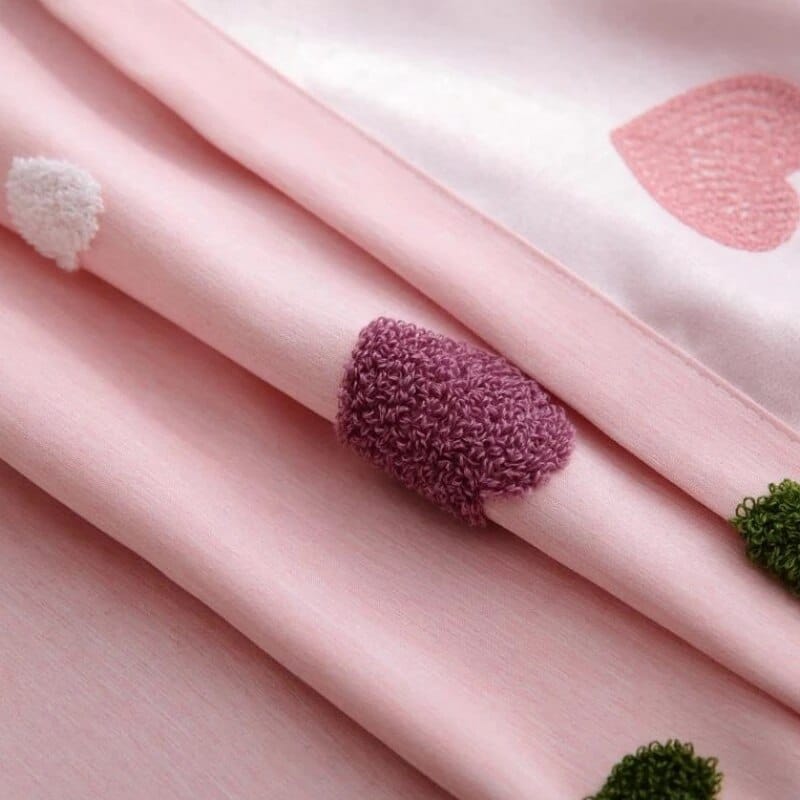 Le motif cœur est très élégant et féminin, avec des couleurs pastel qui s’harmonisent parfaitement avec une ambiance douce et romantique.