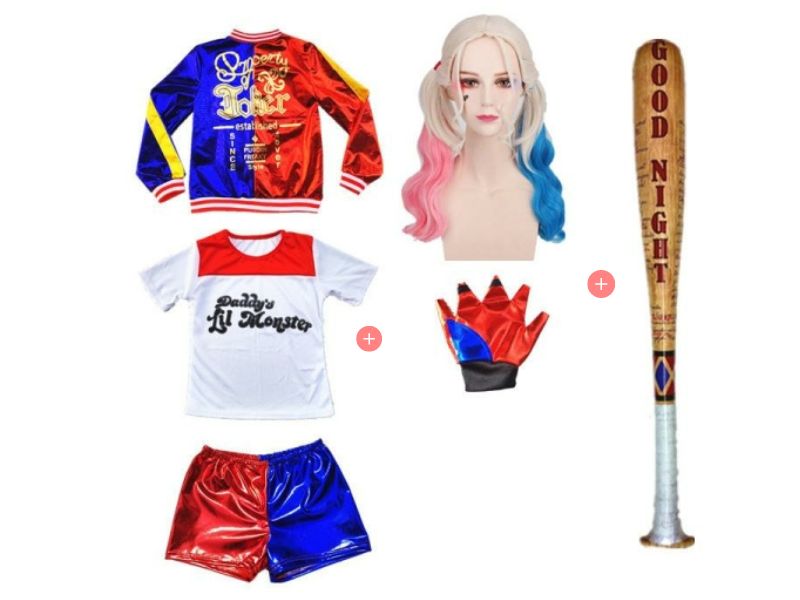 Déguisement Harley Quinn avec une batte de baseball pour filles