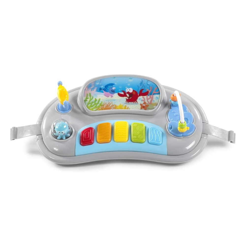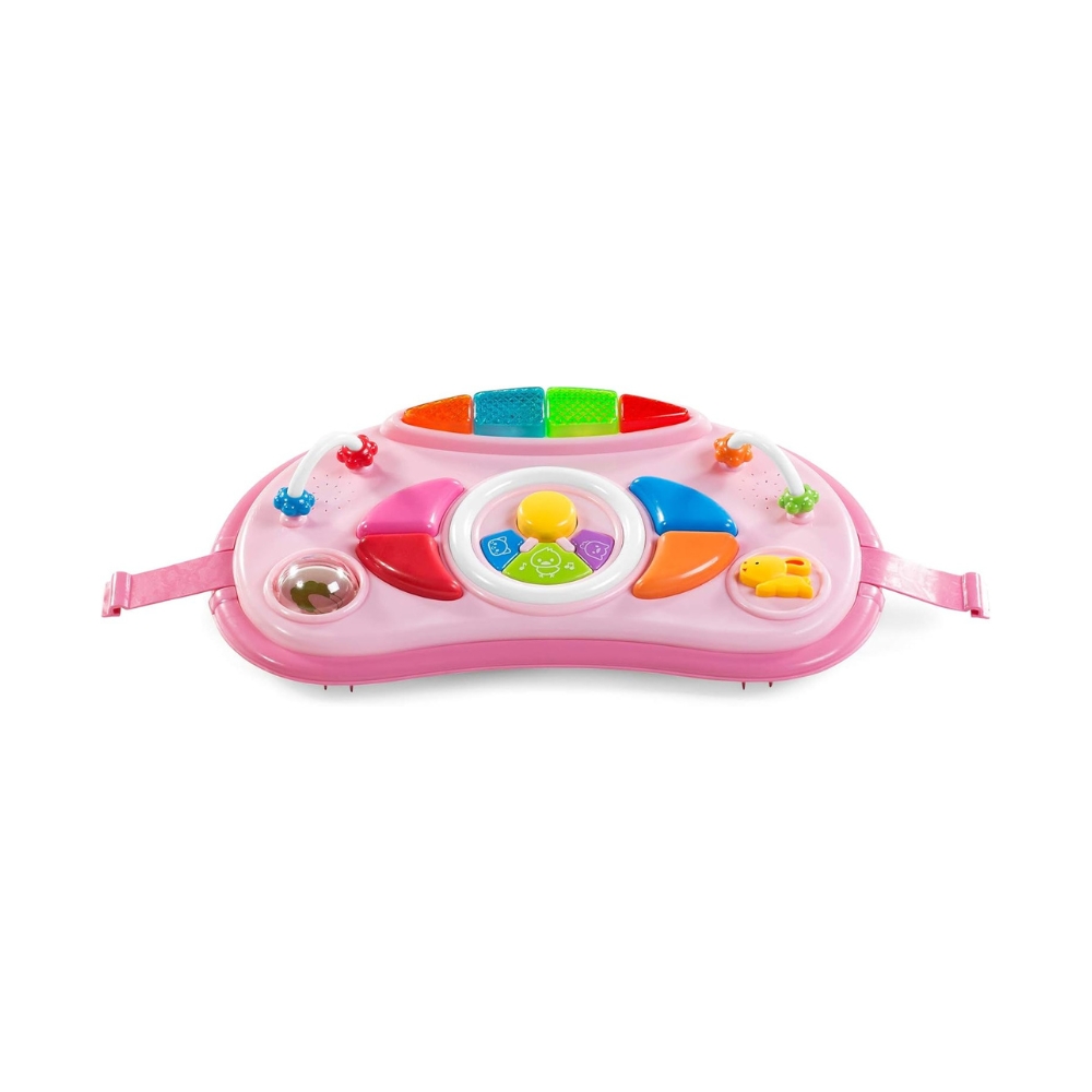 Le plateau interactif, riche en activités ludiques, capte l’attention des petits curieux. Musiques, lumières et textures tactiles stimulent les sens et encouragent le développement cognitif dès le plus jeune âge.