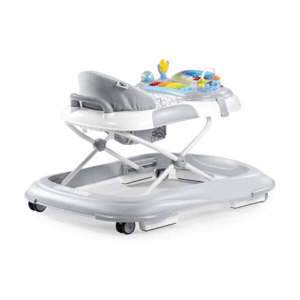 Ce trotteur est également pliable et compact, se rangeant facilement après utilisation. Le plateau amovible permet de transformer le trotteur en un espace de détente ou de repas, répondant ainsi à tous les besoins de votre enfant.