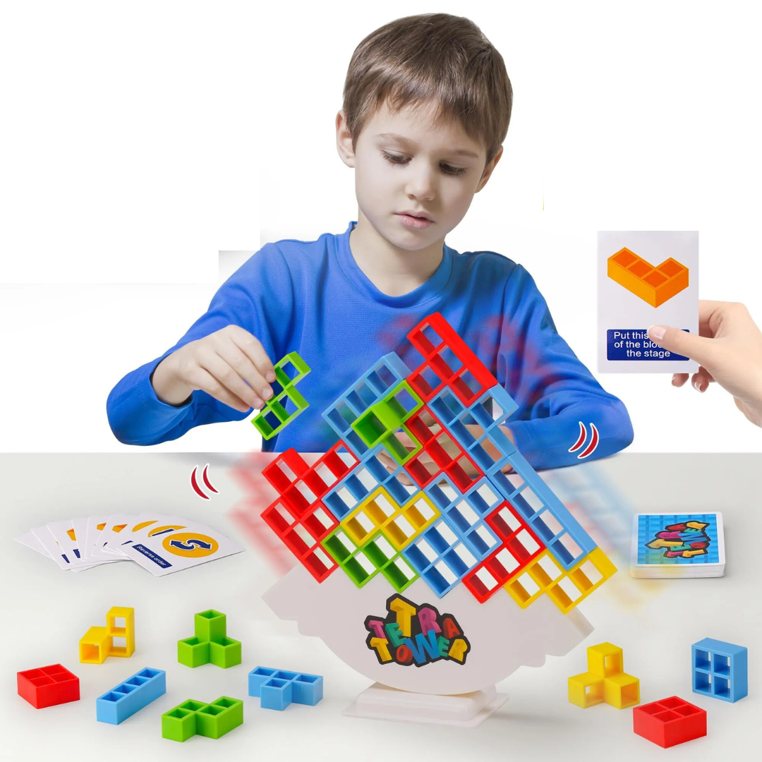 Le jeu de carte qui accompagne les éléments à empiler permet de savoir quelle pièce il faut ajouter à la tour. Le but du jeu étant de ne pas faire tomber la structure. Mais pour compliquer un peu la tâche, le socle sur lequel est posée la structure est fait en culbuto et est donc instable.