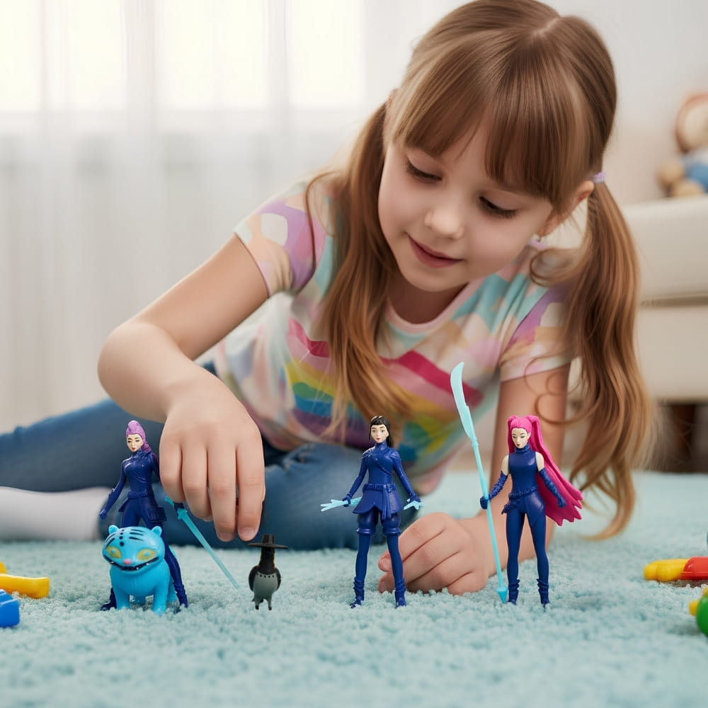 Ce pack de figurines K-pop Demon Hunters ravira les jeunes fans par la diversité et le charisme de ses personnages. Les héroïnes sont fidèlement reproduites dans leurs tenues de combat et dotées d’expressions déterminées qui inspirent force et courage.