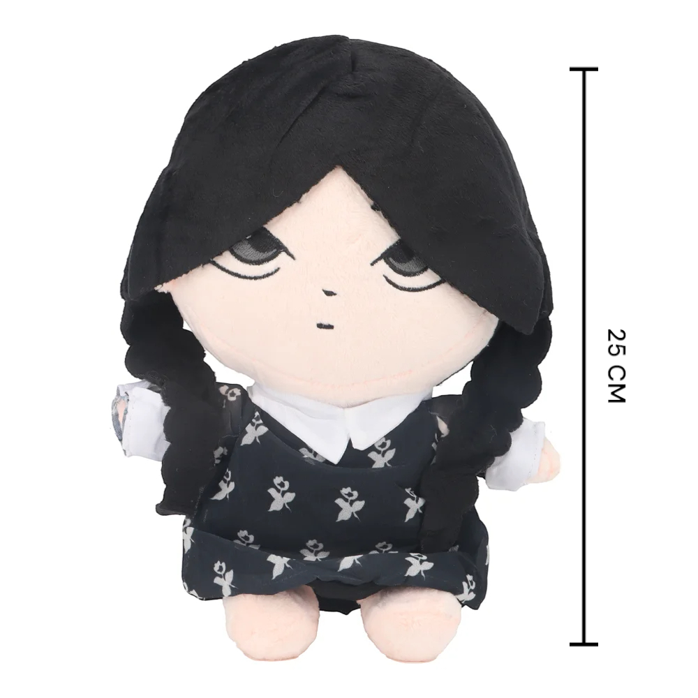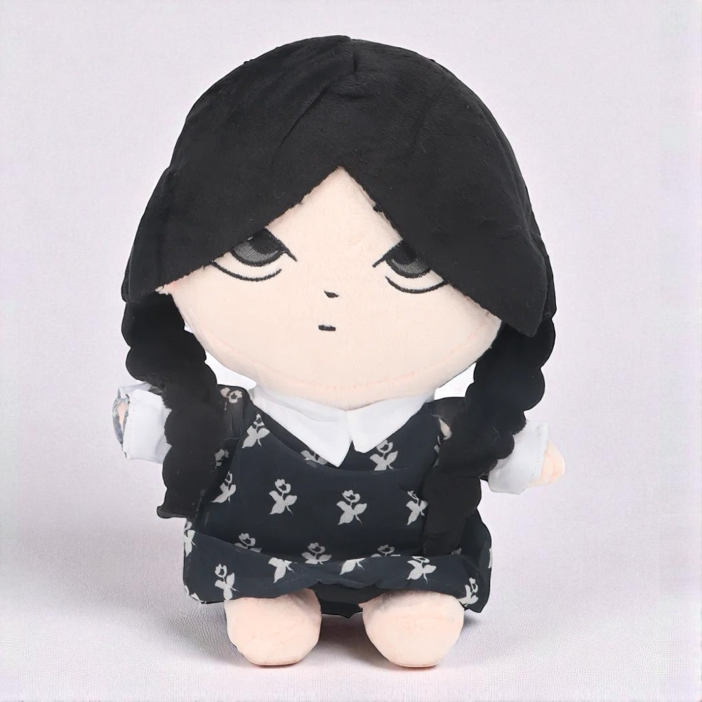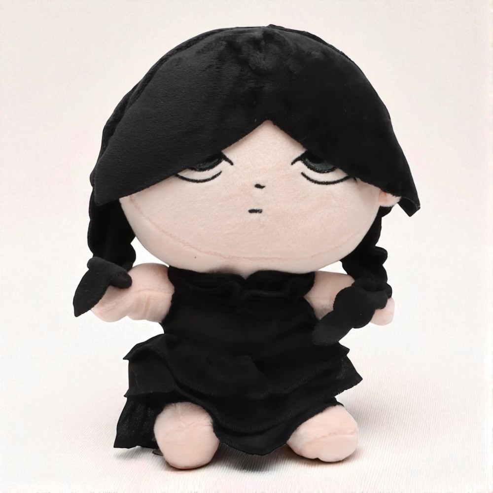 Sa robe noire, ou sa robe à fleurs blanches et col blanc rappellent ses looks iconiques, et ses deux nattes renforcent son identité. Une peluche idéale pour inventer des histoires originales, rêver en solo ou rejouer ses scènes préférées dans un monde rien qu’à elle.