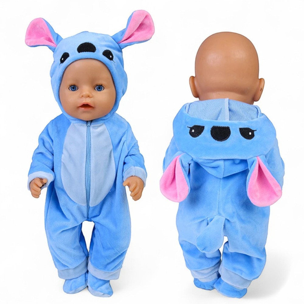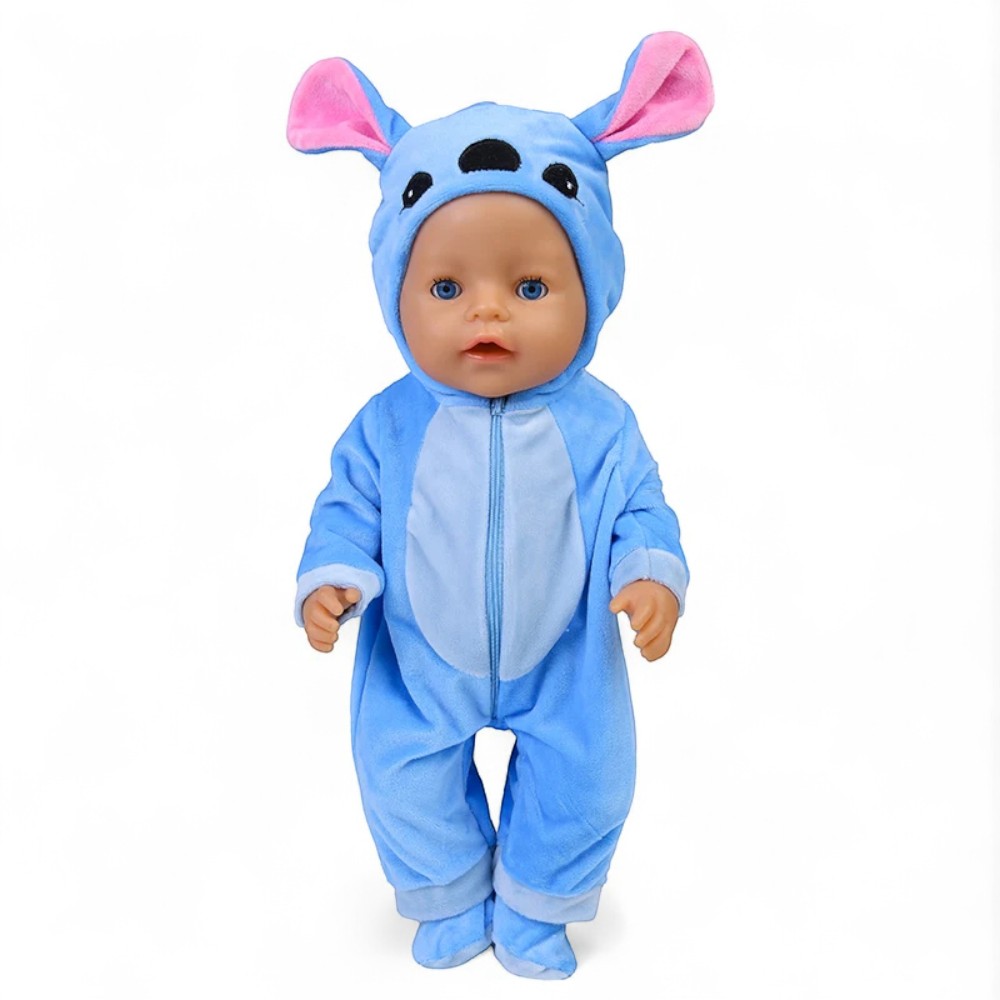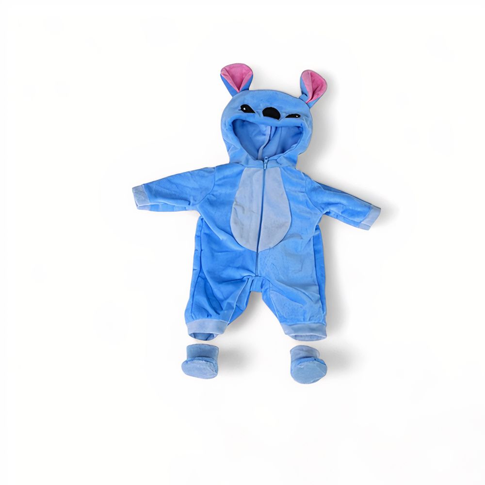 Votre fille est fan du film Lilo et Stitch ? Elle va adorer habiller sa poupée avec ce pyjama Stitch !  Ce vêtement à capuche transforme sa poupée en un adorable extraterrestre bleu. Avec ses oreilles en relief, sa petite queue et ses jolis détails cousus, chaque élément a été pensé pour faire sourire votre enfant.