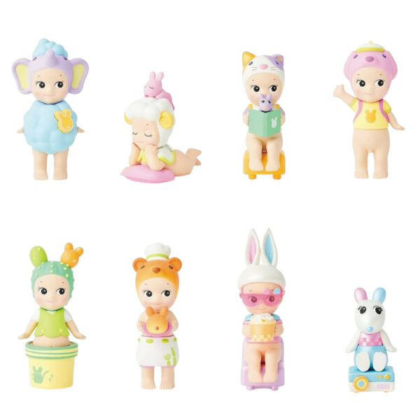 8 figurines Sonny Angel à collectionner en forme de petit bébé mignon et rigolo portant un déguisement amusant.
