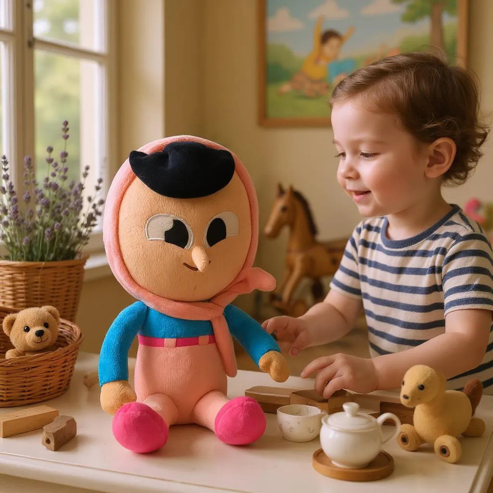 Une invitation à ralentir, à inventer, à câliner. Sa conception pensée dans les moindres détails, textures souples, bras malléables, coutures renforcées en fait une figure de stabilité affective.