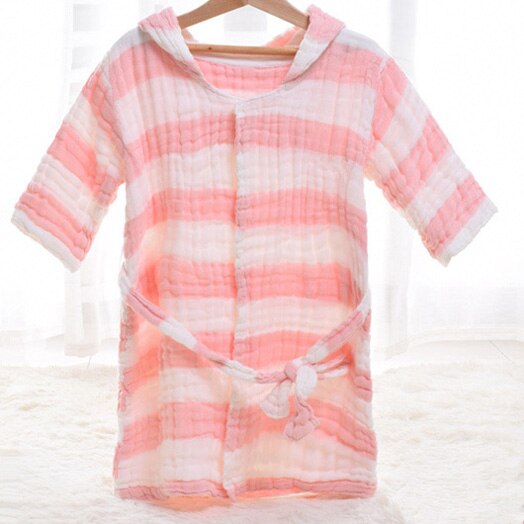 Peignoir rayé à capuche en mousseline de coton pour fille